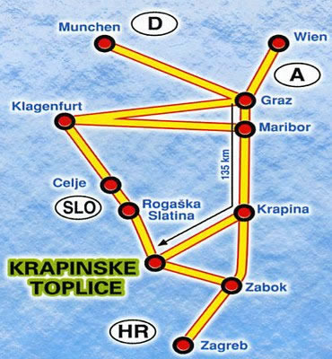 Udaljenost Krapinskih toplica od Zagreba je 45 km.